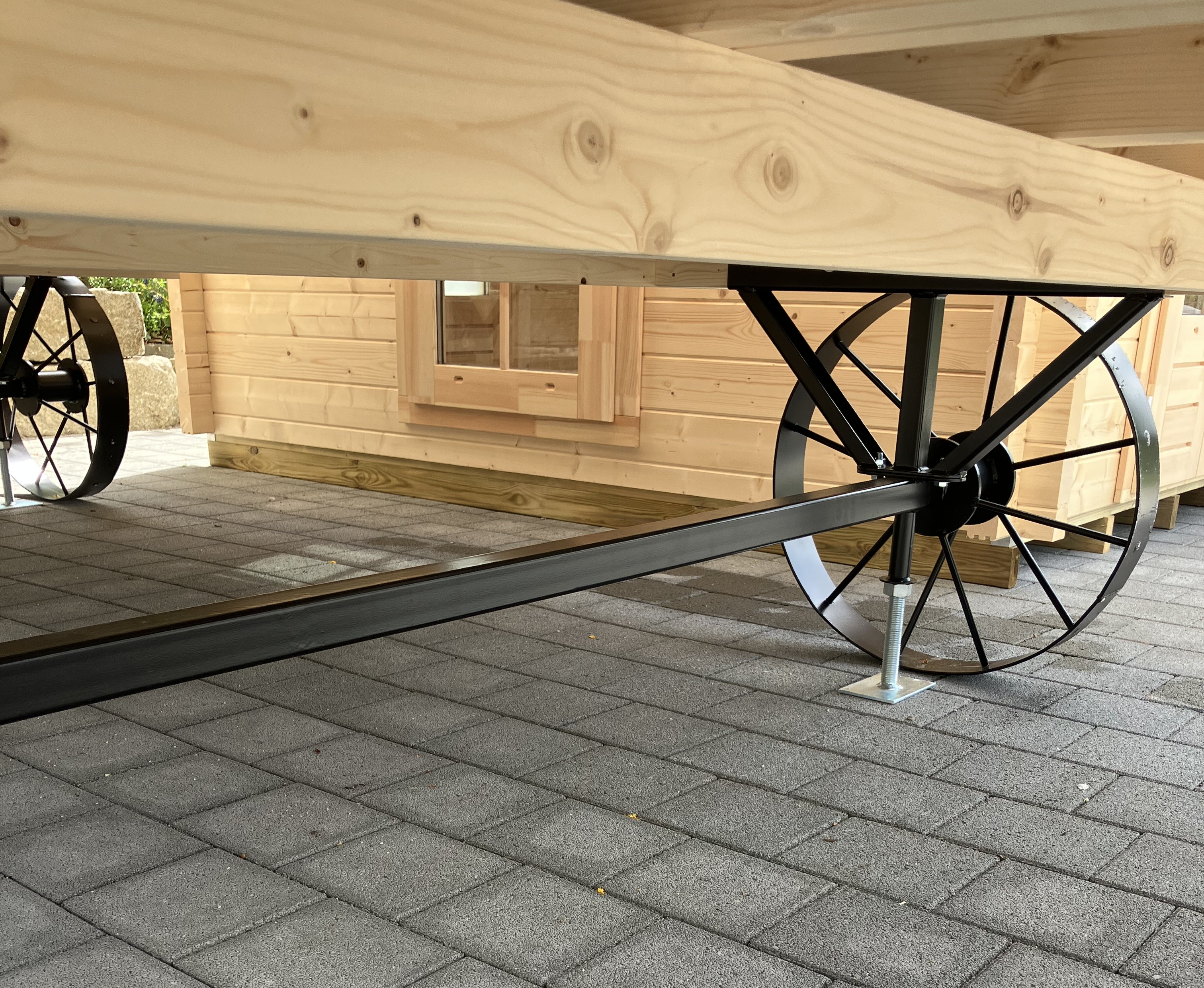 Der Zirkuswagen kann entweder als Gartenhaus oder mit einem Räder Set (nicht lenkbar) aufgestellt werden, wenn er auf den Räder steht, braucht es zudem keine Baubewilligung, da er jeder Zeit verschoben werden kann.