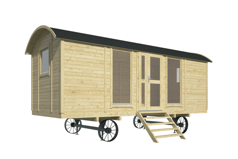 Suchen Sie nach einer praktischen und vielseitigen Lösung für Ihre Outdoor-Bedürfnisse? Unser Camping-Zirkuswagen Barby, als Bausatz aus 19 mm Fichtenholz , ohne Räder - Set, ist eine ausgezeichnete Wahl! Grösse 600 x 240 cm x 354 cm hoch auf Räder, 2 Fenster fest + 2 Fenster zum öffnen + 1 Doppeltür.