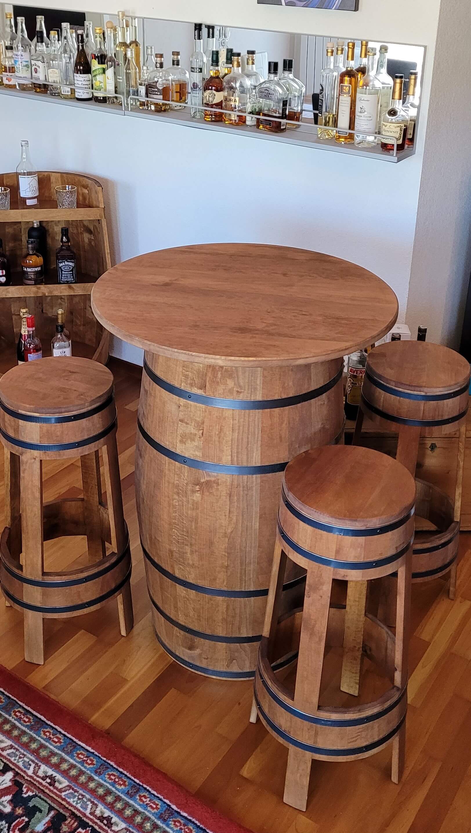 - Erlenholz, abgestimmt auf den Fass-Stehtisch