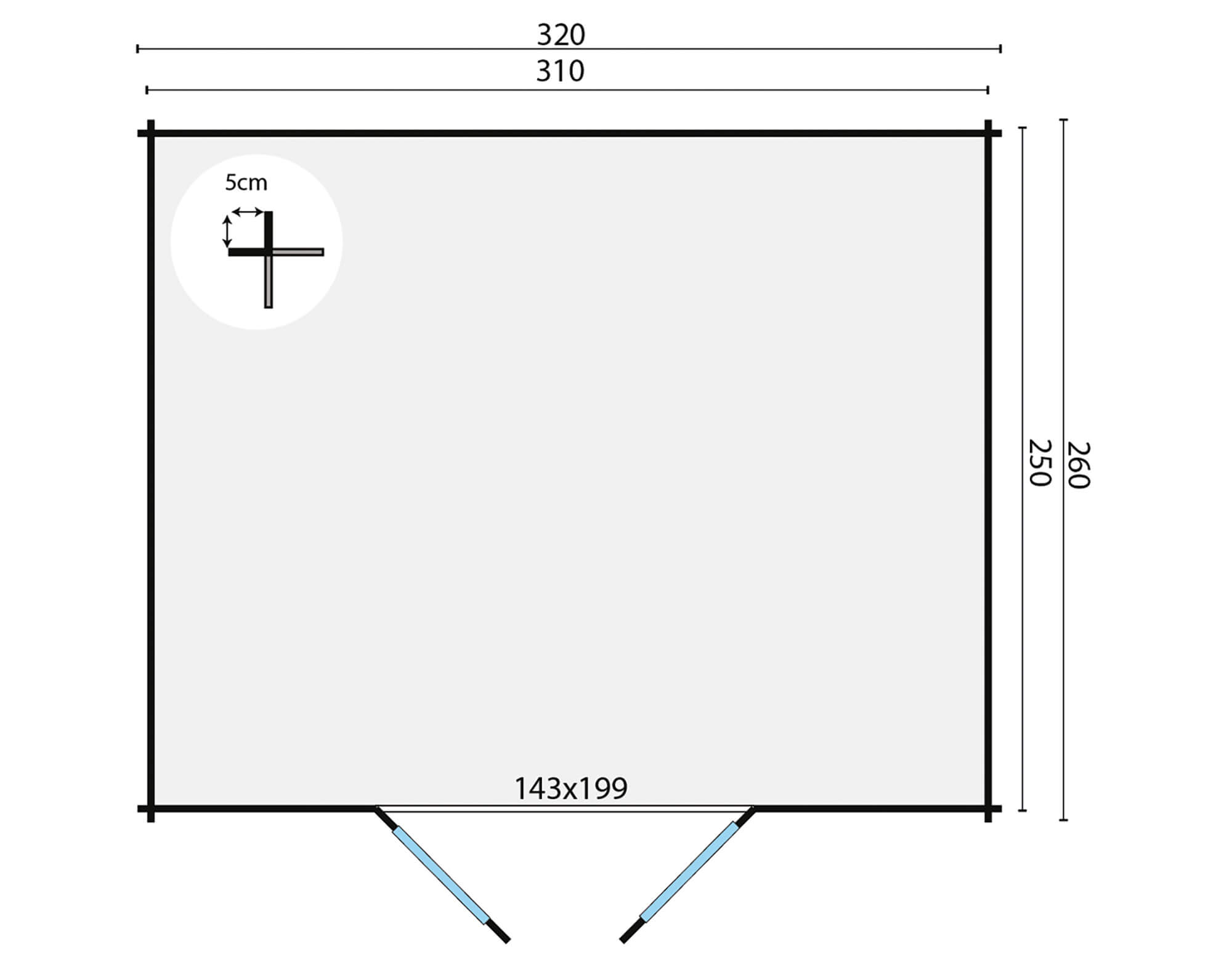 - Zweiflügelige Türe mit Zylinderschloss 143 x 199 cm
