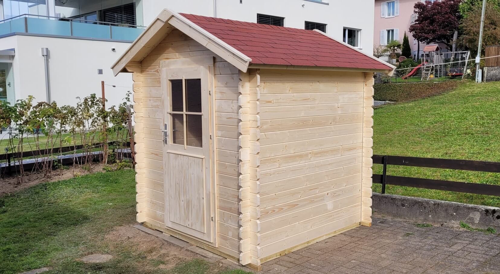 Erweitern Sie Ihren Outdoor-Bereich mit unserem Gartenhaus Richard. Dieses Modell wird aus 28 mm starken Blockbohlen hergestellt und als praktischer Bausatz geliefert. Mit seinem kompakten Grundriss von 180 x 180 cm und einer Firsthöhe von 222 cm ist das Gartenhaus Richard ein ideales Rückzugsort oder Lagerplatz für Ihre Gartenutensilien.