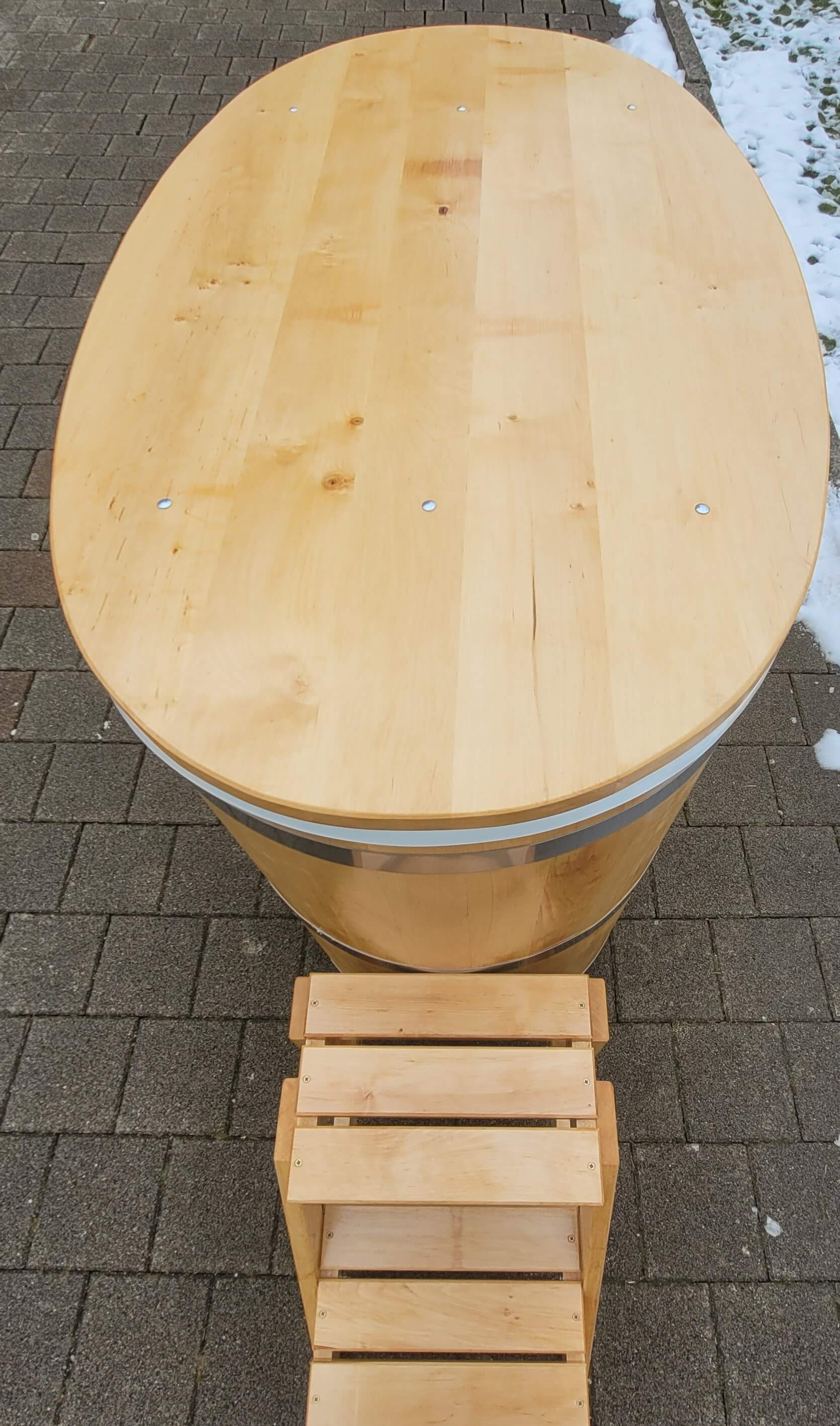 Sauna-Tauchbottich Zedernholz XXL | Für 2 Personen, mit Holzdeckel und Einstiegstreppe, 140 × 80 cm