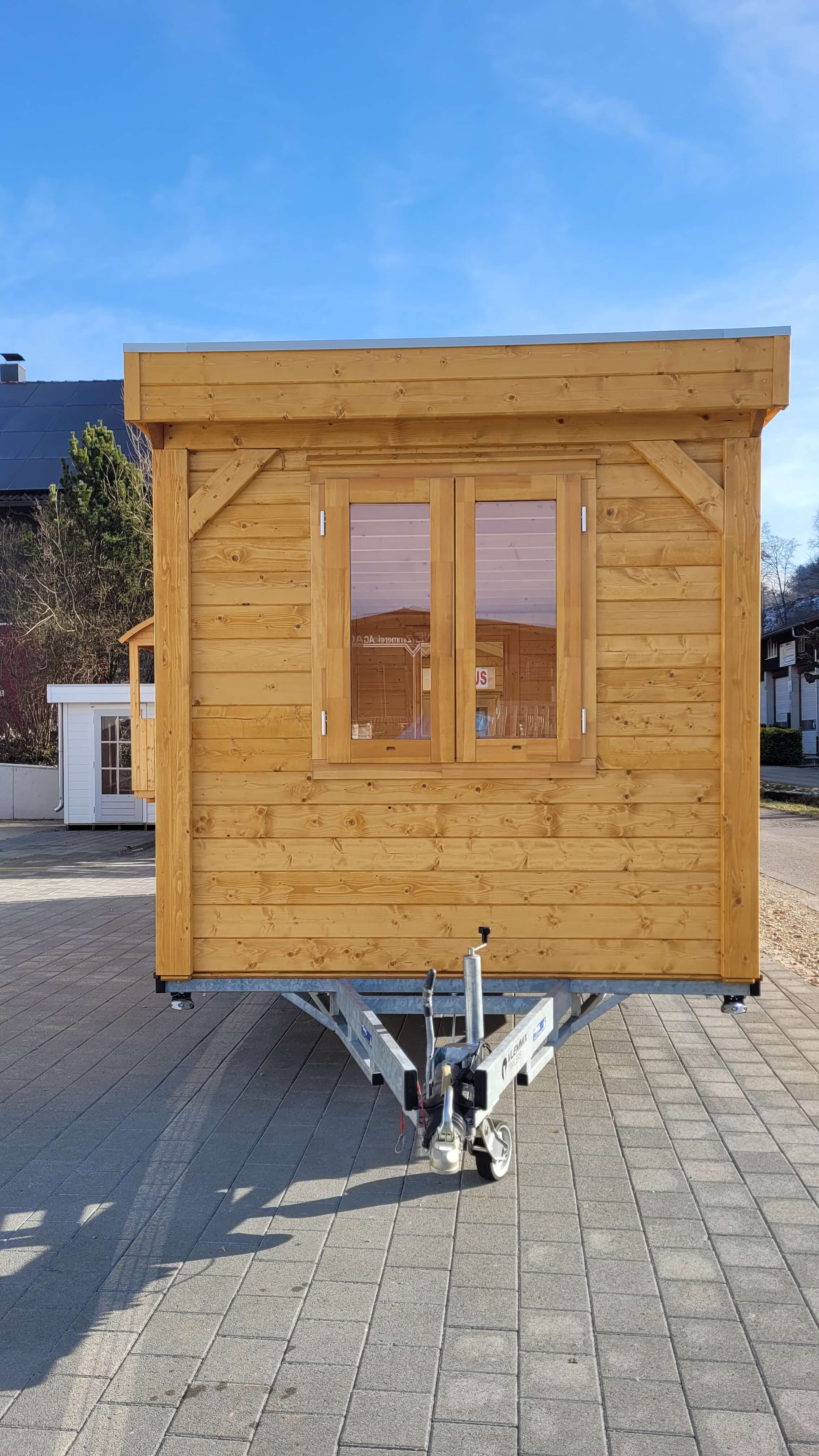 Tiny Haus oder Gartenhaus auf dem Campingplatz, auch als Büroraum geeignet. Inkl. Neuem Autoanhänger + leer vorgeführt ab MFK, Grösse ca. 250 x 660 cm Aufbauten.