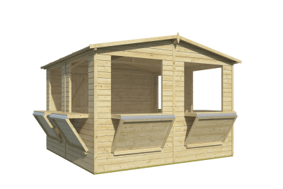 Kiosk Moose, Wandstärke 16 mm, Bausatz mit vorgefertigten Fichtenholz Wand - Elementen, die in den Ecken zusammengeschraubt werden.