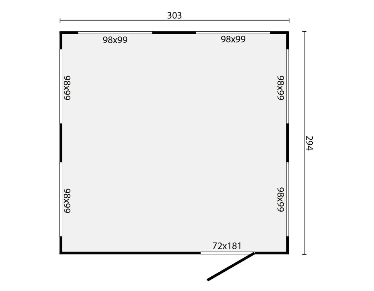 Grundriss 303 x 294 cm Firsthöhe 220 cm inkl. 18 mm Boden